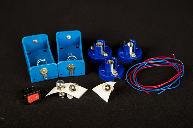 | This kit consists of two single cell holders, 3 bulb  holders, 3 bulbs, a switch and connecting wire. One can do the experiments  related to Simple circuit, Open circuit, Closed circuit, resistance in series,  resistance in parallel, cells in series and cell in parallel etc., |  |  |  |